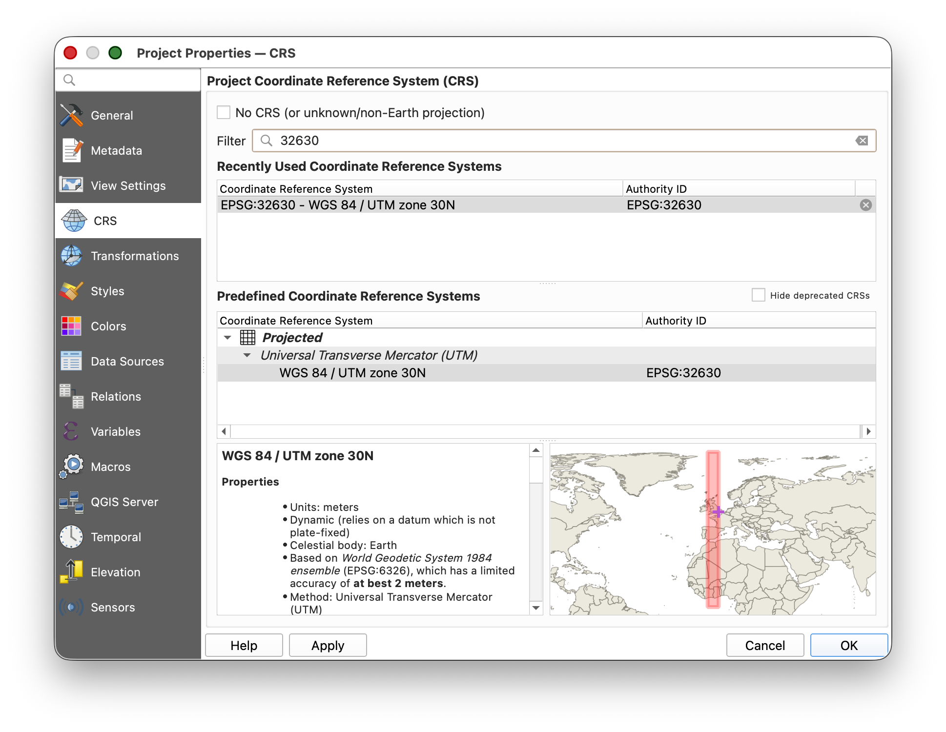CRS: EPSG:32630 - WGS 84 / UTM zone 30N- Explore the options for Appearance, especially the very useful alignment tools.