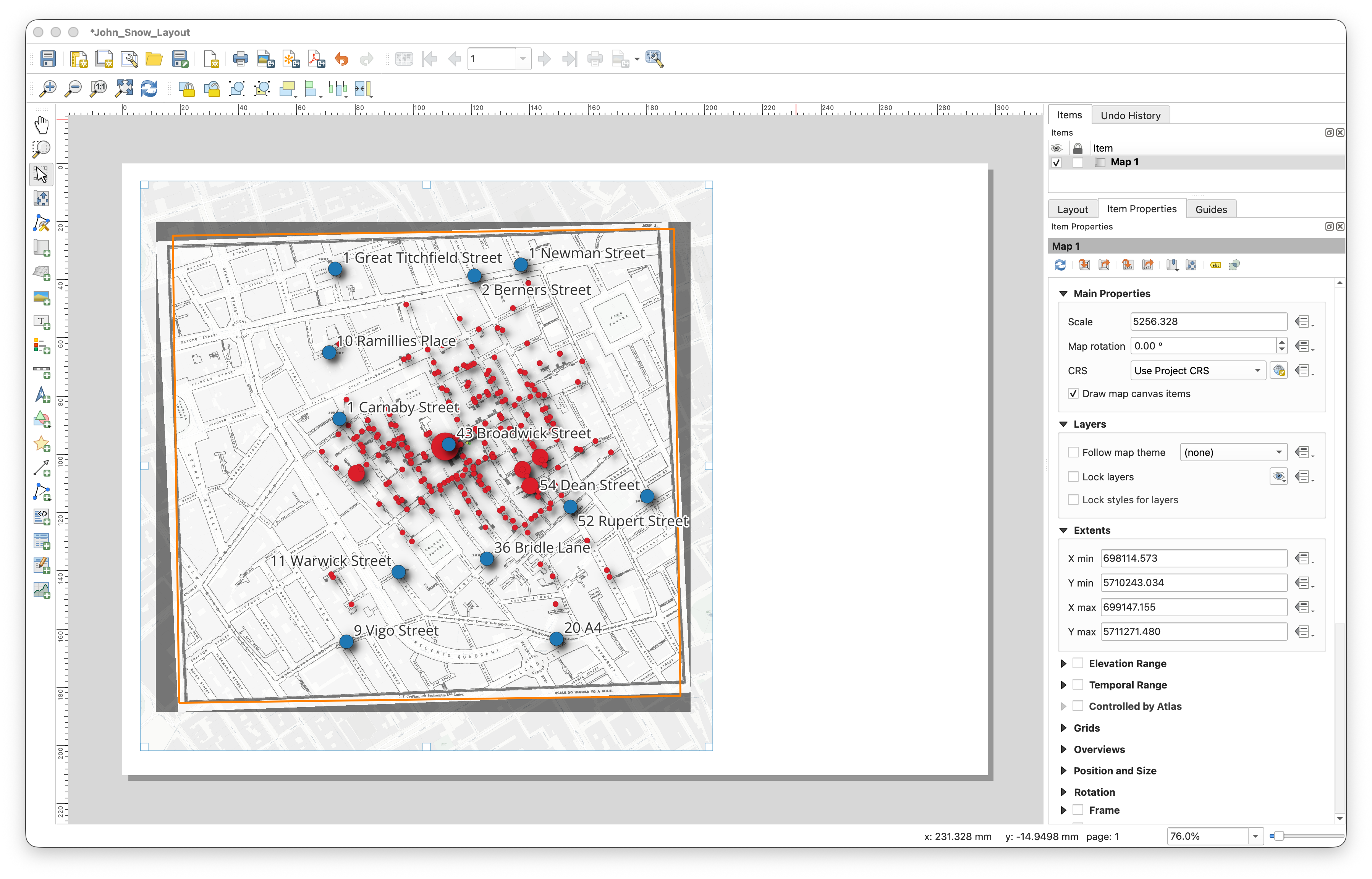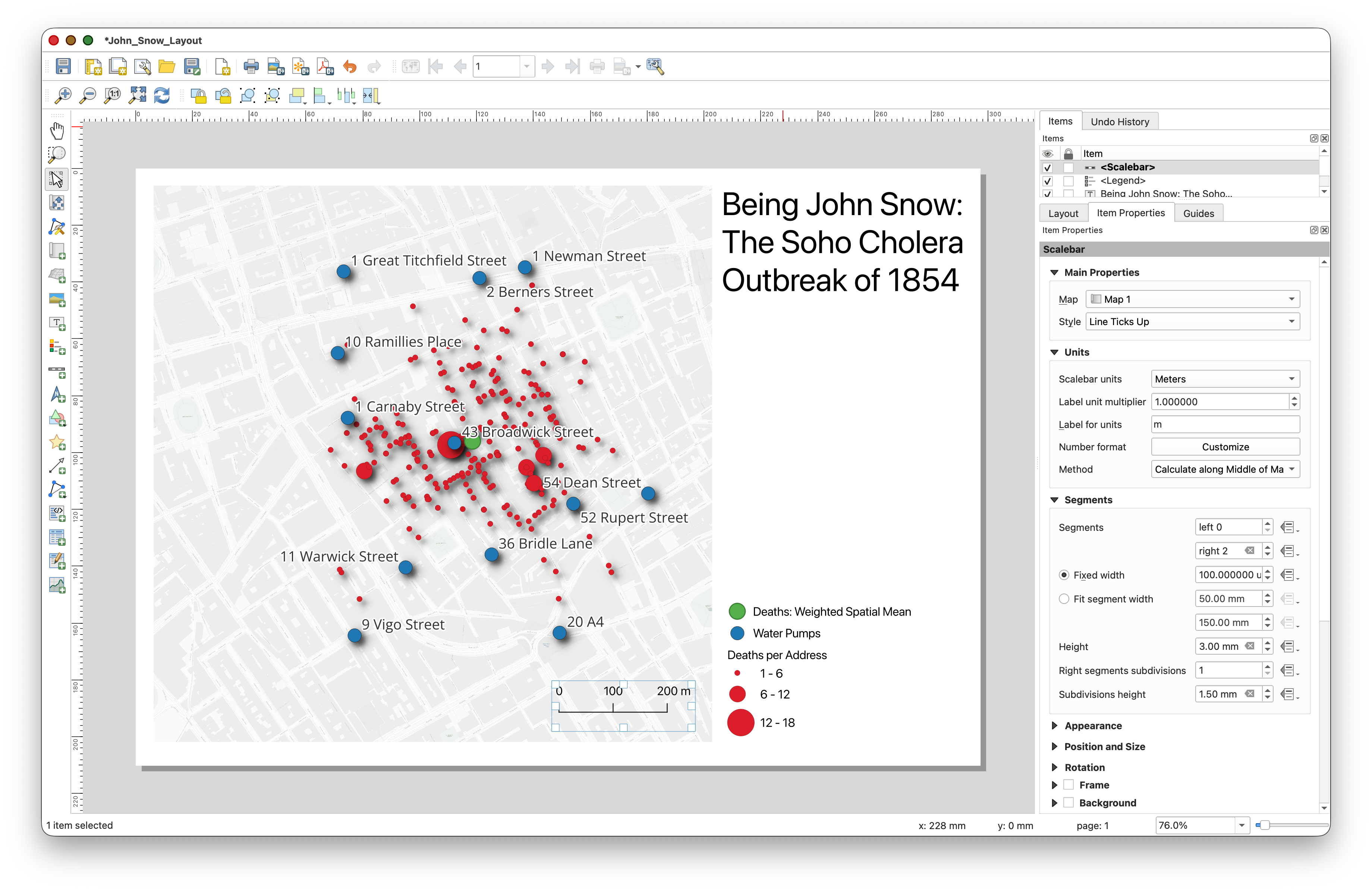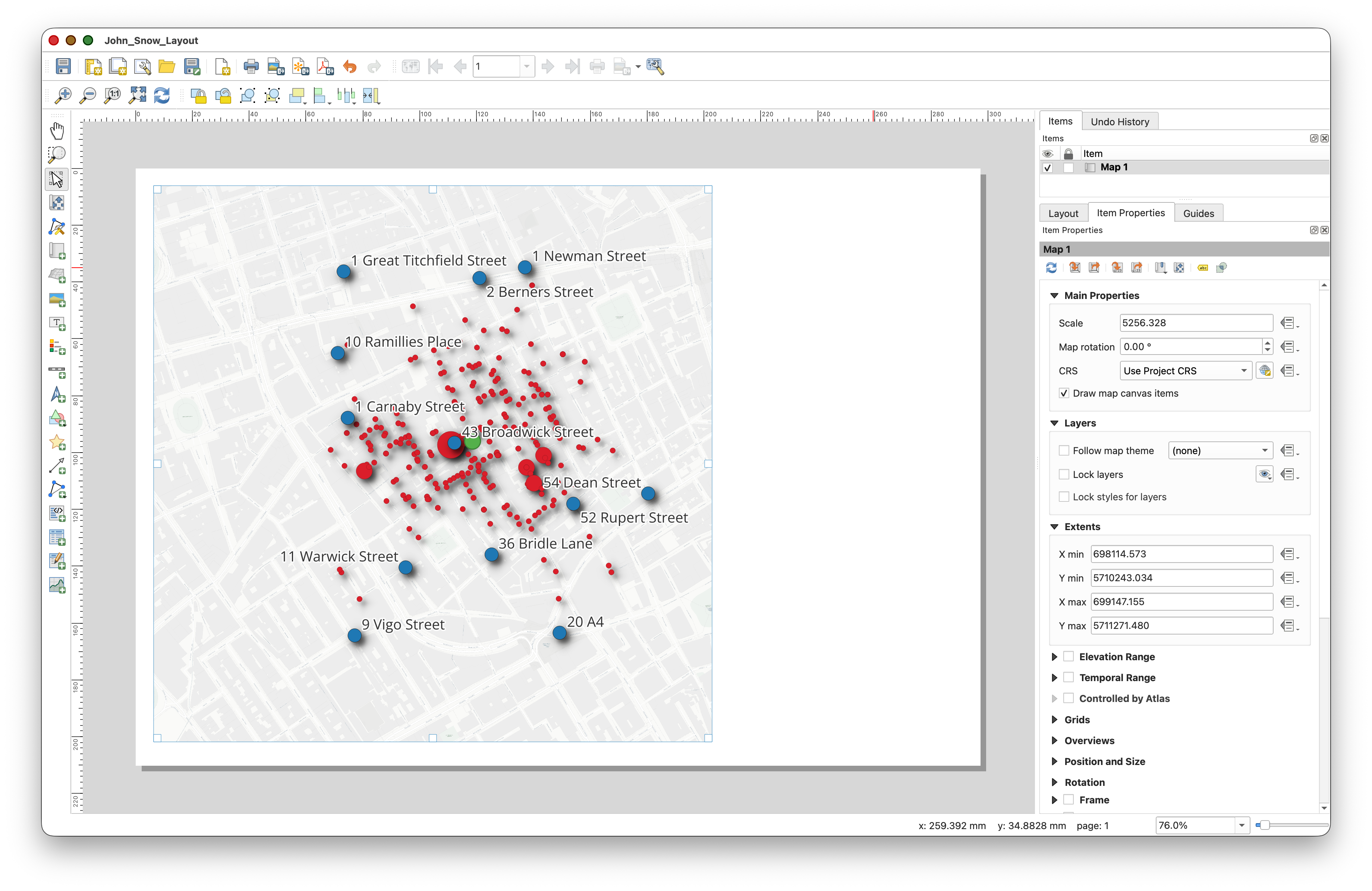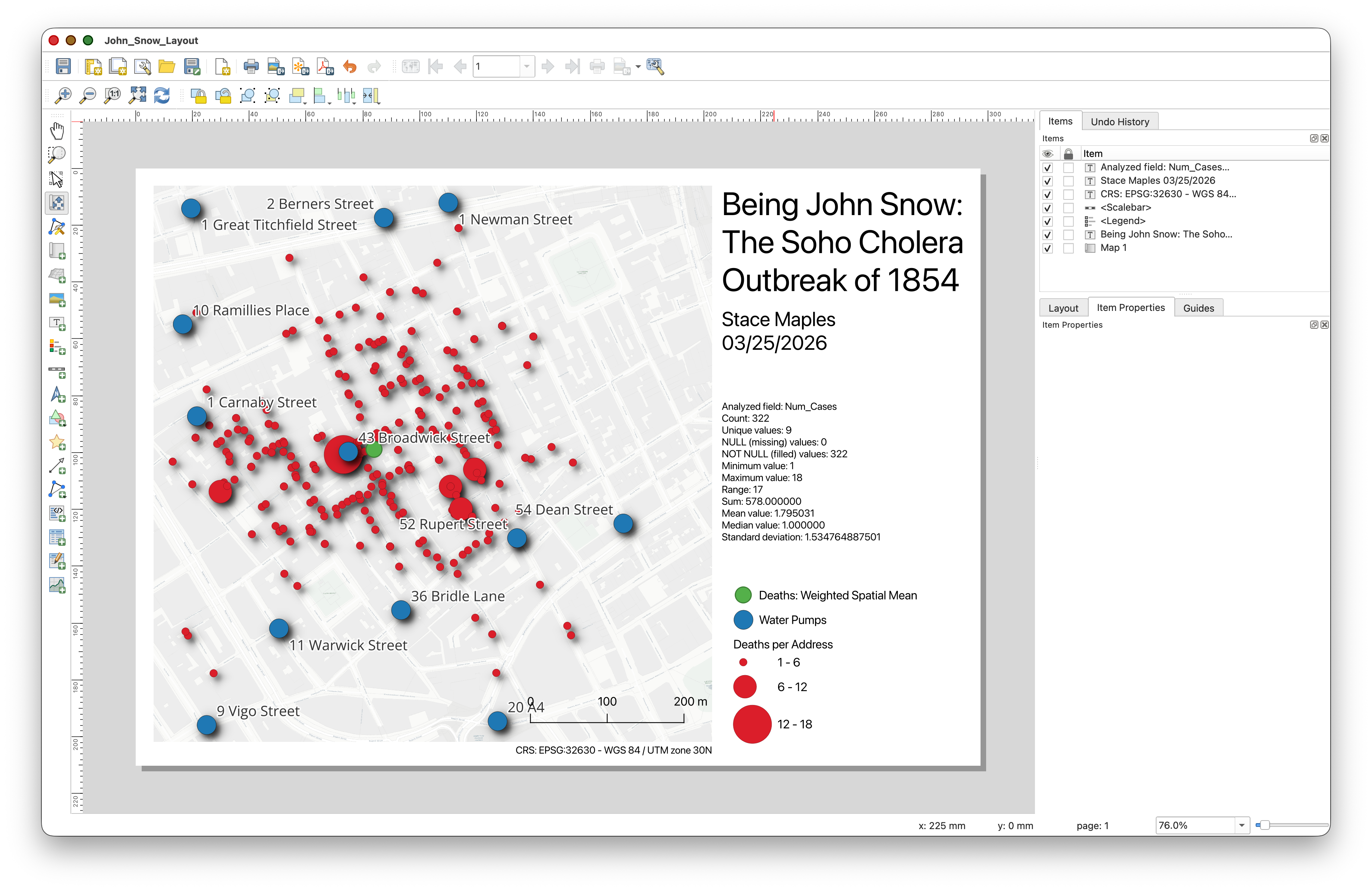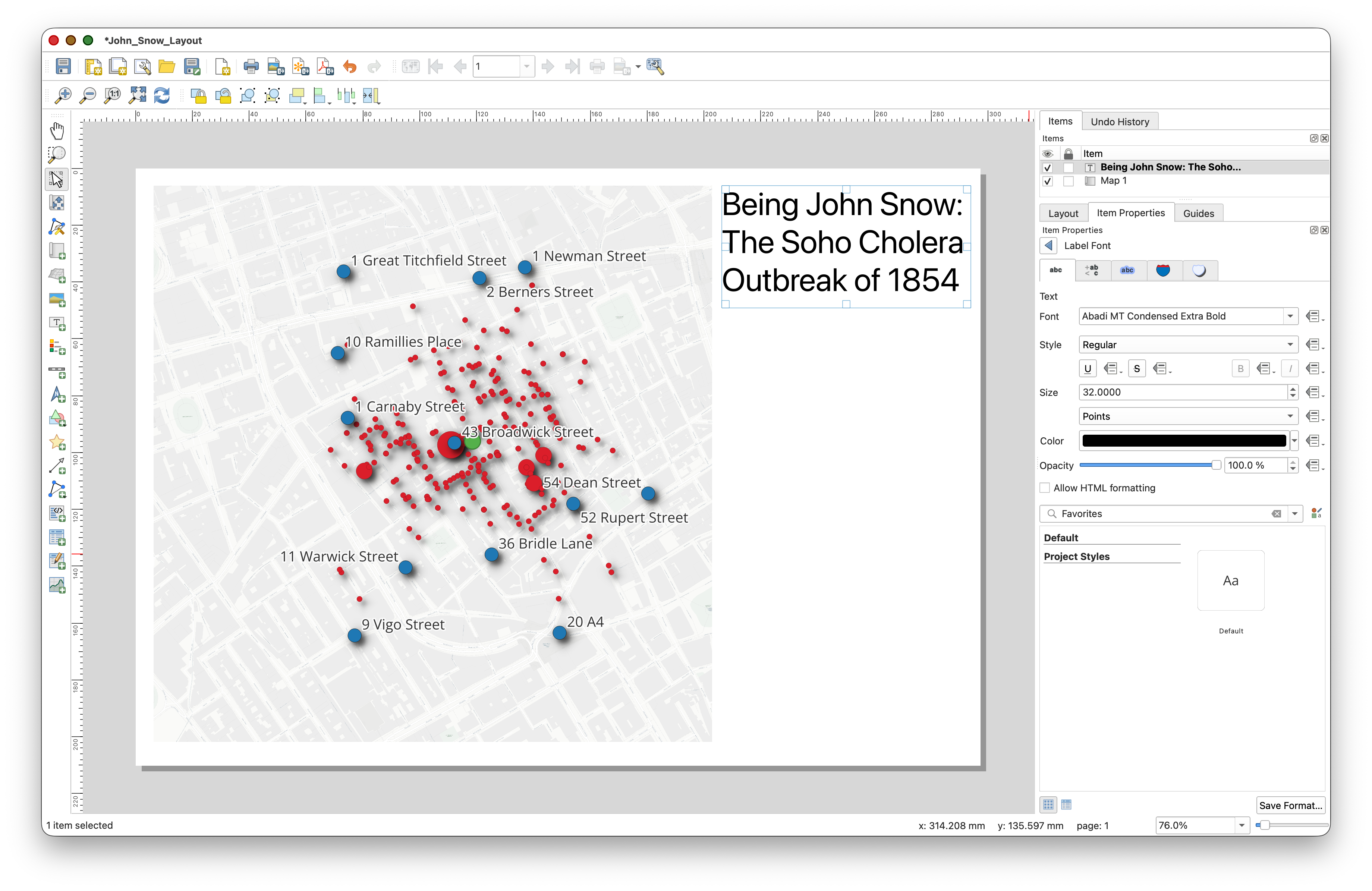 John Snow Cholera Outbreak, Soho, 1854. In Item Properties, click on the Appearance > Font tool