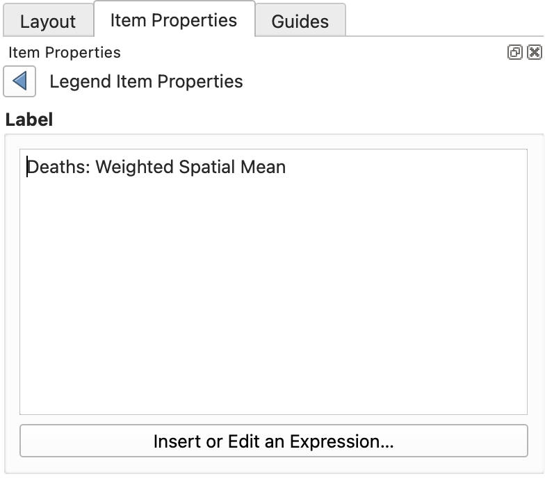 - Click on the legend in the Layout window so its Item Properties appear.