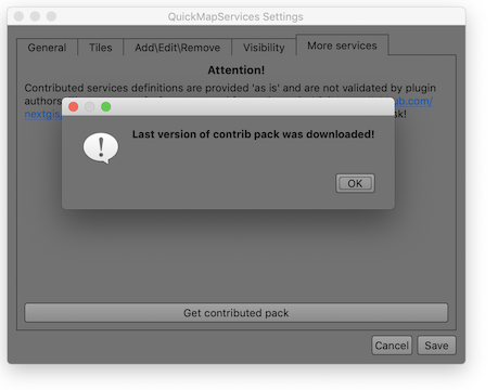 - Go to Web > QuickMapServices > Settings, select the More Services tab, and click Get contributed pack.