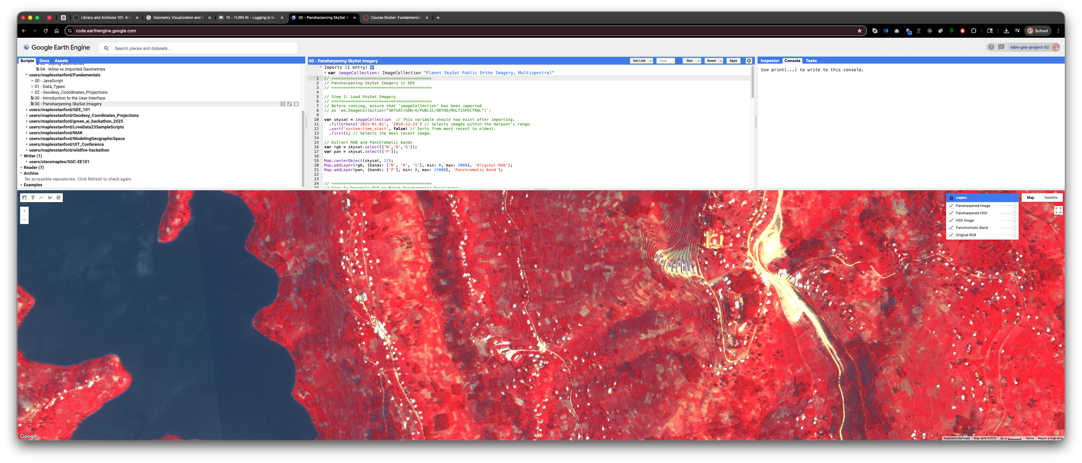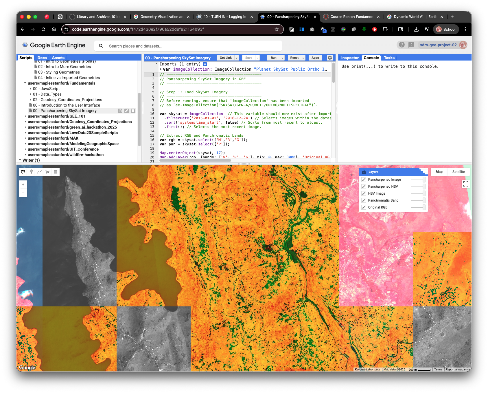 If you are feeling adventurous, you are welcome to change visualization settings, dates, map location, or other parts of the sample script. If you do, add inline comments so your instructor can easily see what you changed.