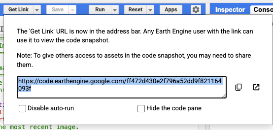 - A working Google Earth Engine "Get Link" URL