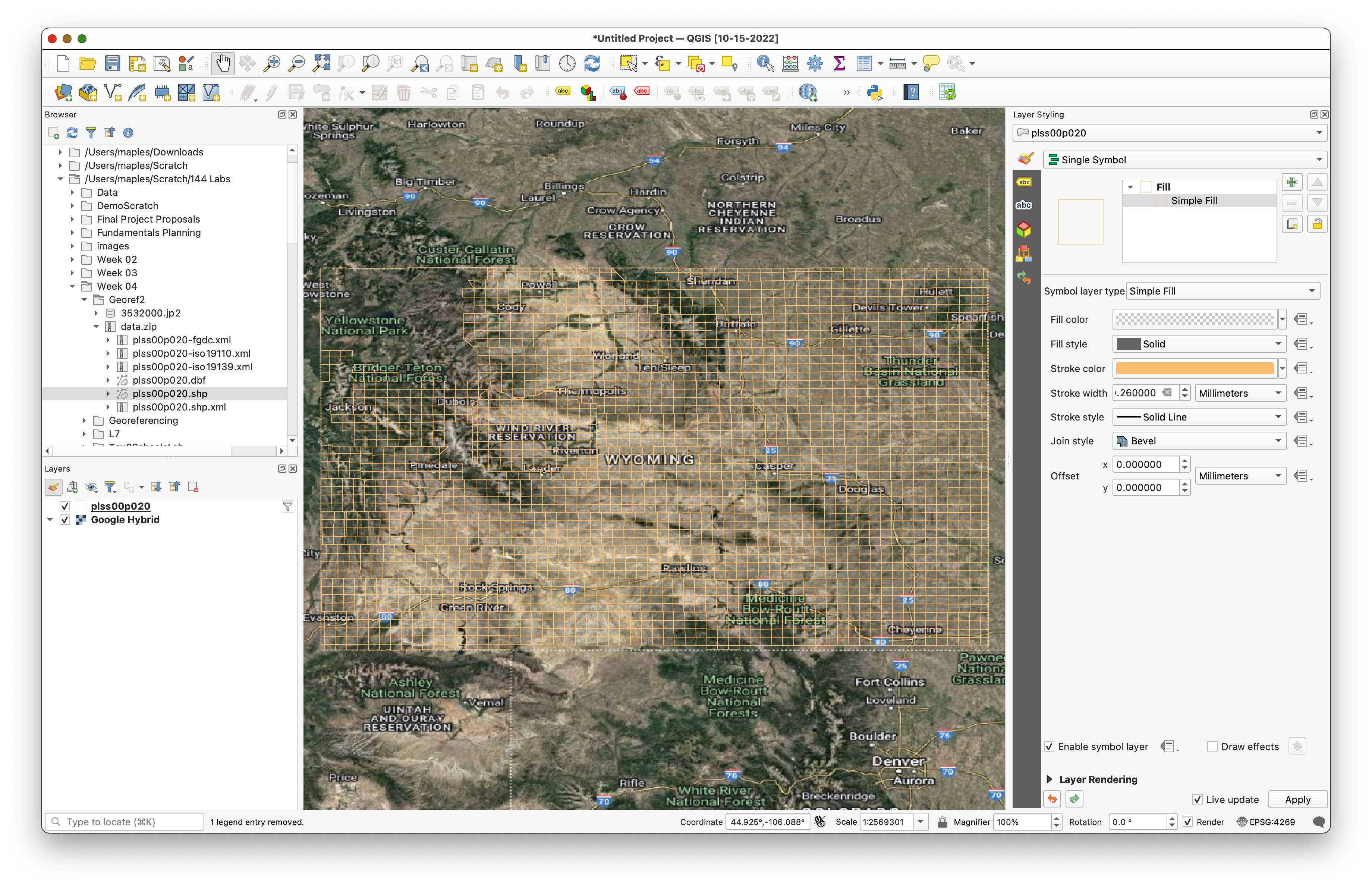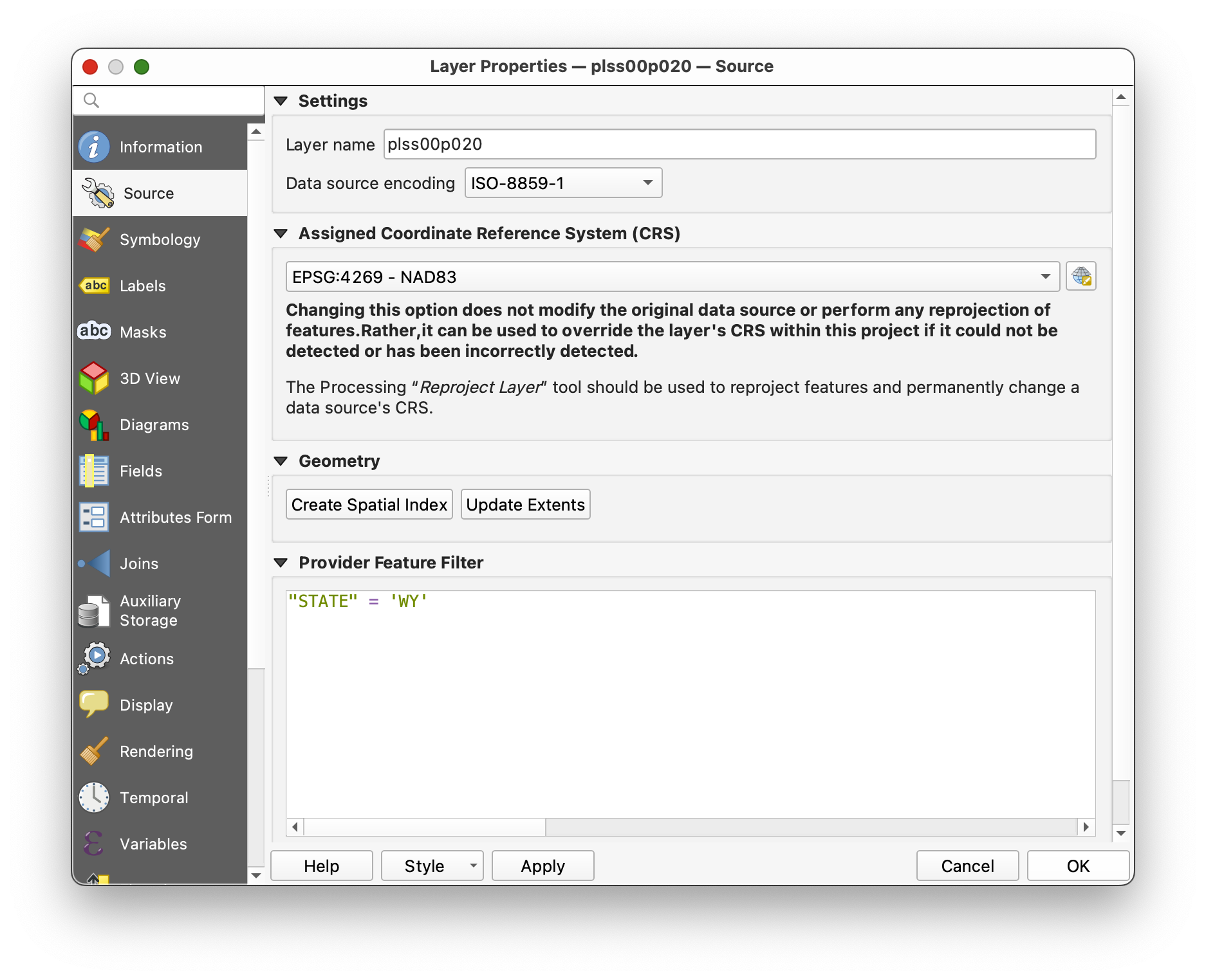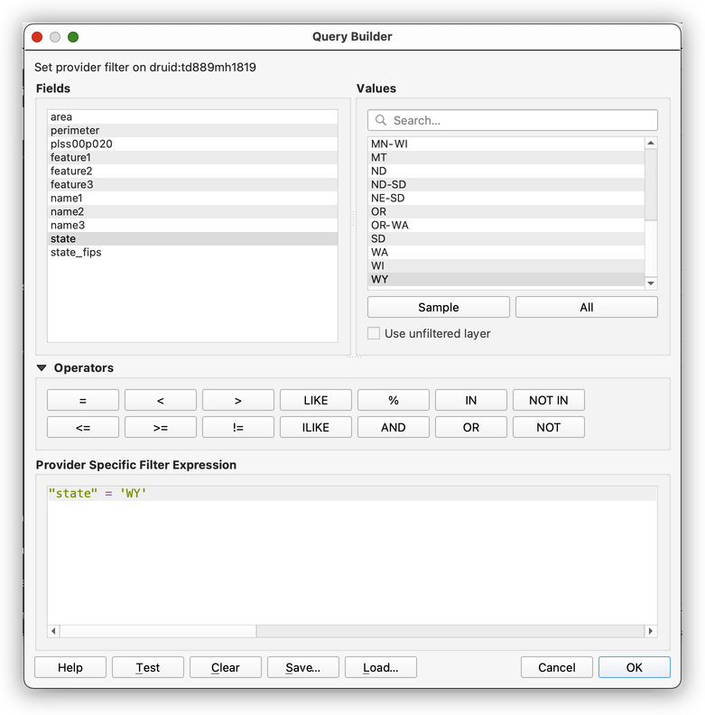 The PLSS layer covers the entire United States, but we only need the part relevant to Wyoming. Rather than loading the entire reference layer visually, we will filter it.