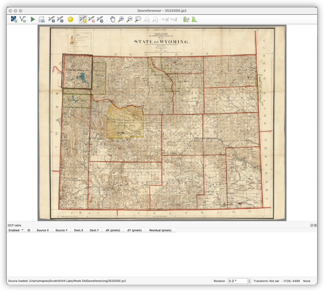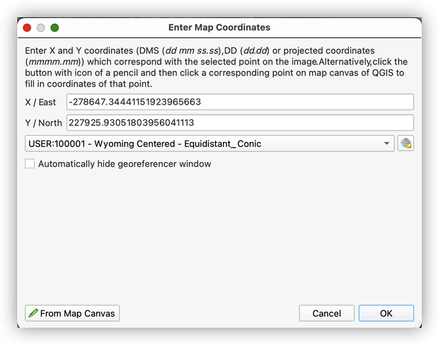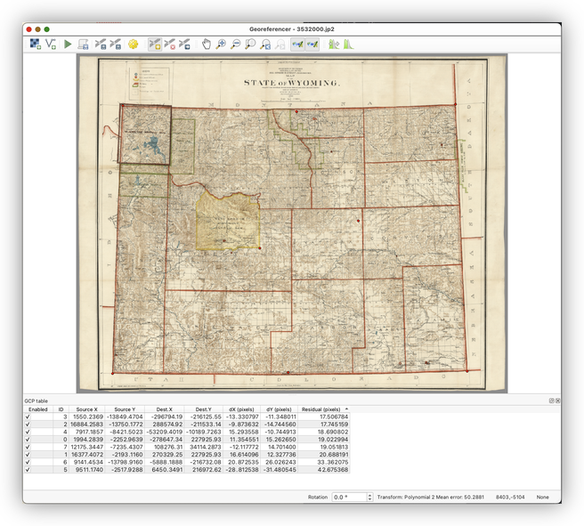 Why make a custom CRS? Georeferencing works best when the target projection fits the map you are aligning. A projection centered on Wyoming reduces distortion for this specific use case and gives you a more sensible geometric target.