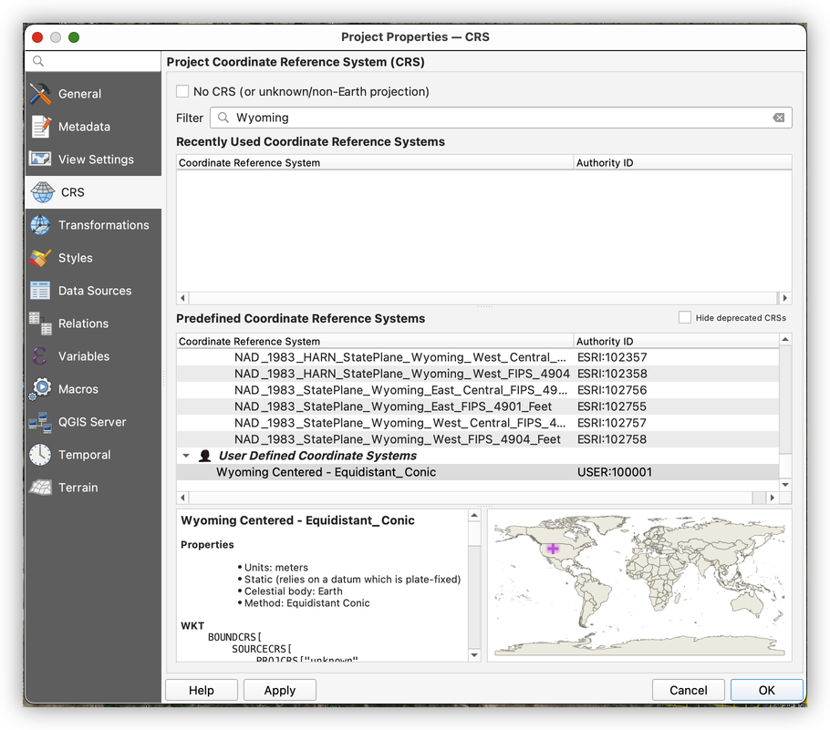 - The custom Wyoming-centered CRS