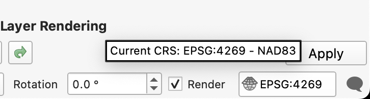 - Click the Project CRS indicator in the bottom-right corner of the QGIS window.