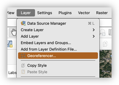 - In QGIS, go to Layer > Georeferencer.