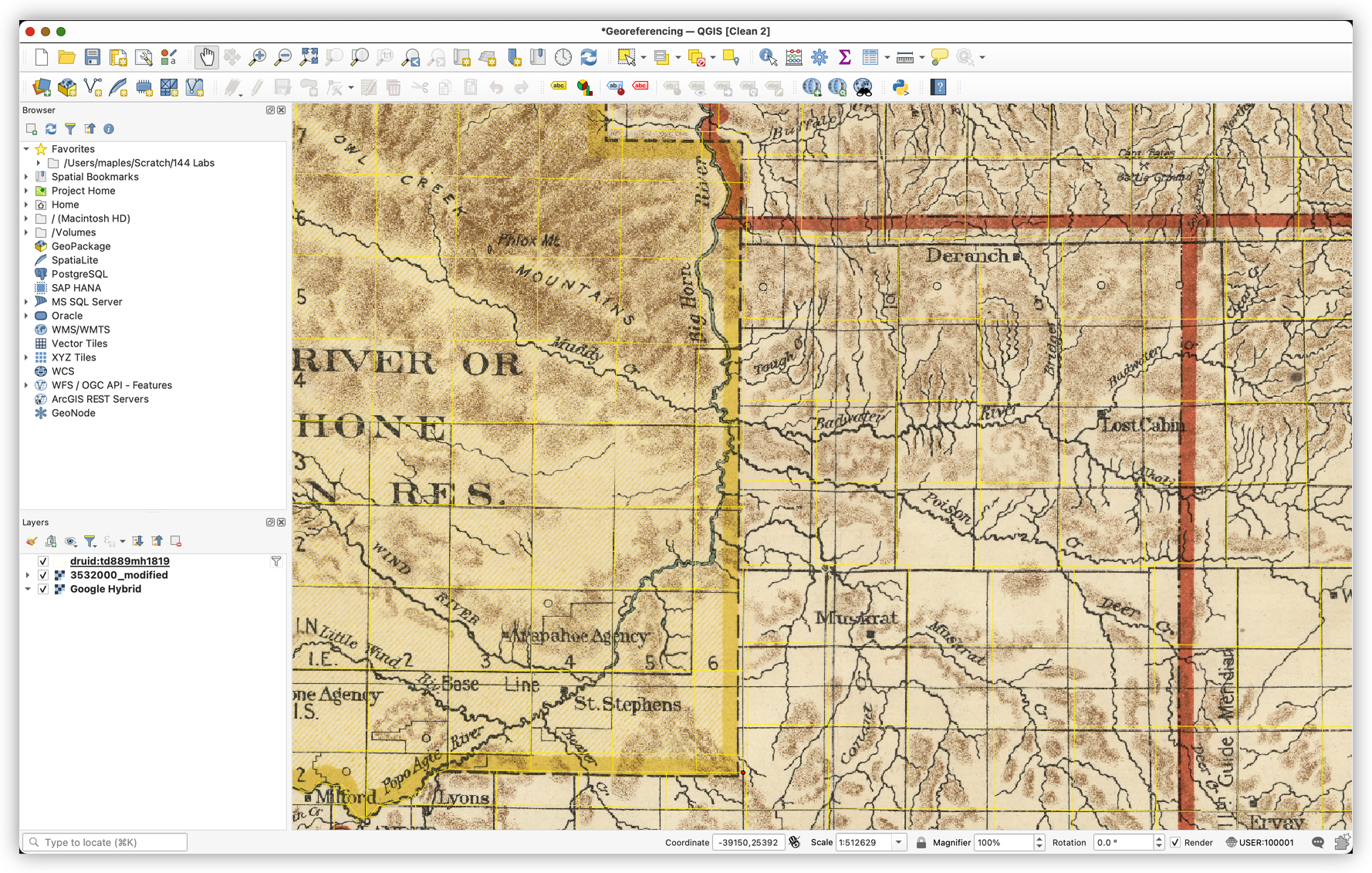 - Check the alignment of the historical map against the PLSS grid and basemap.