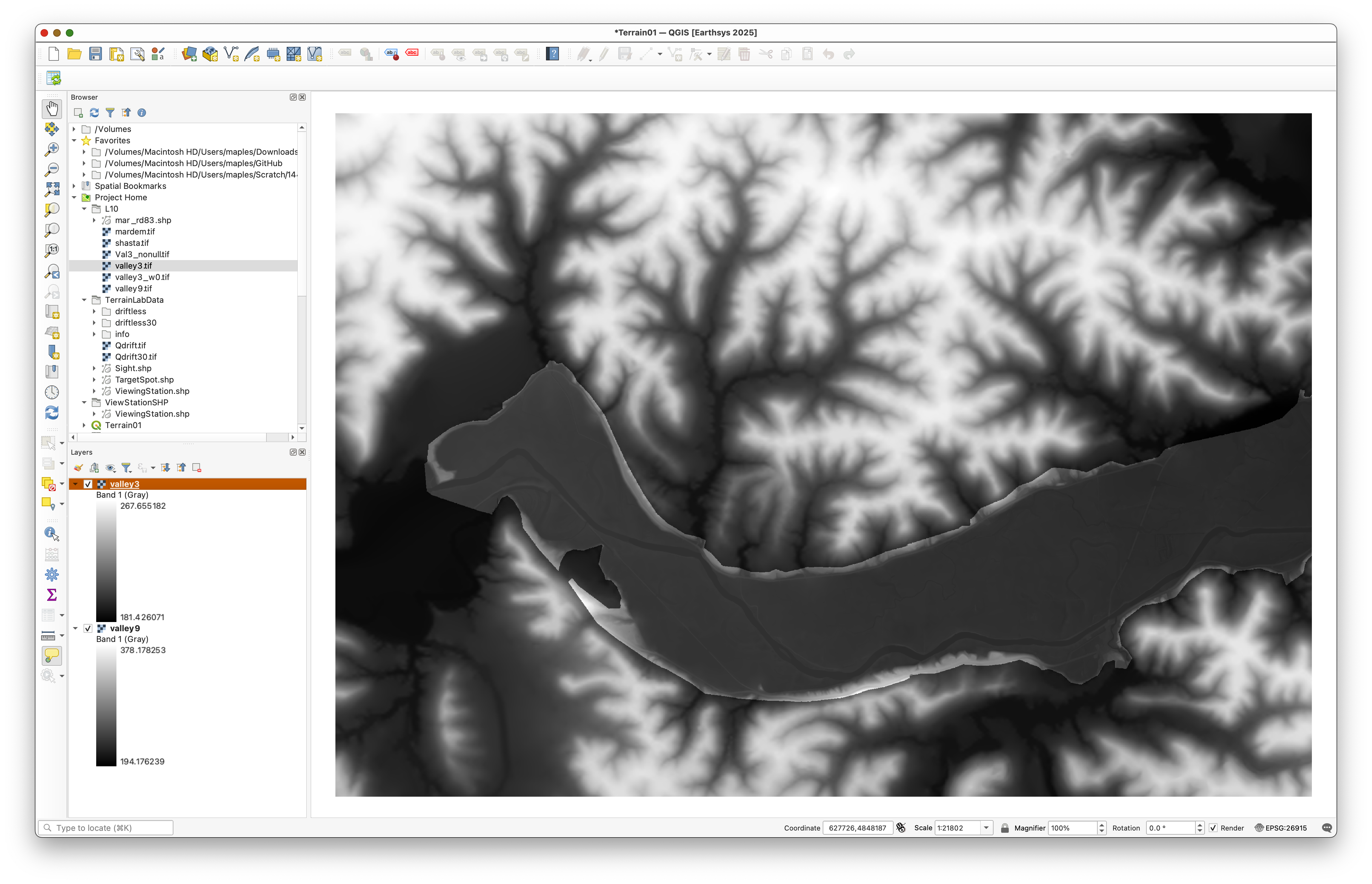 valley3is on top. - Toggle the layers on and off to compare their extents.