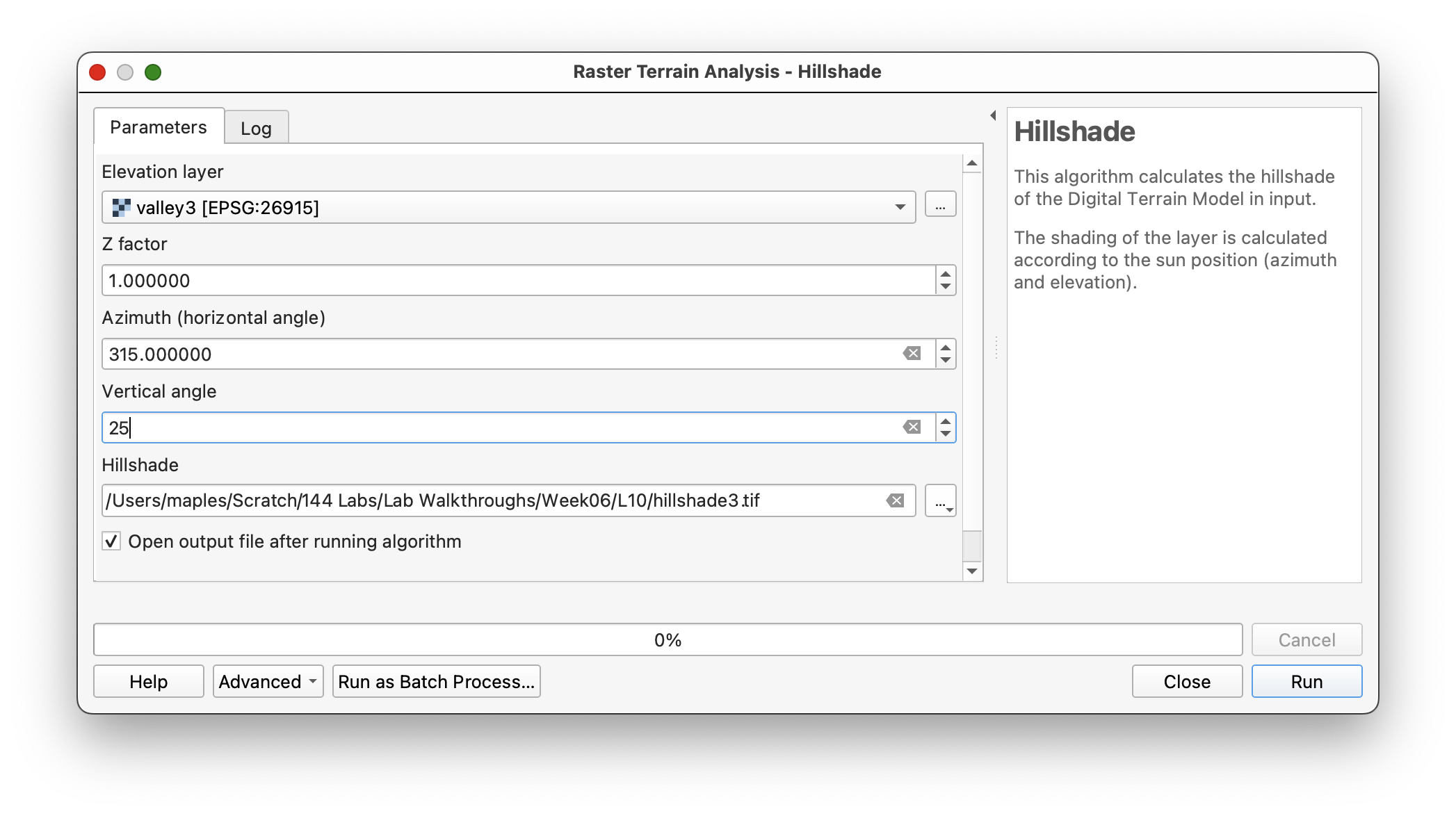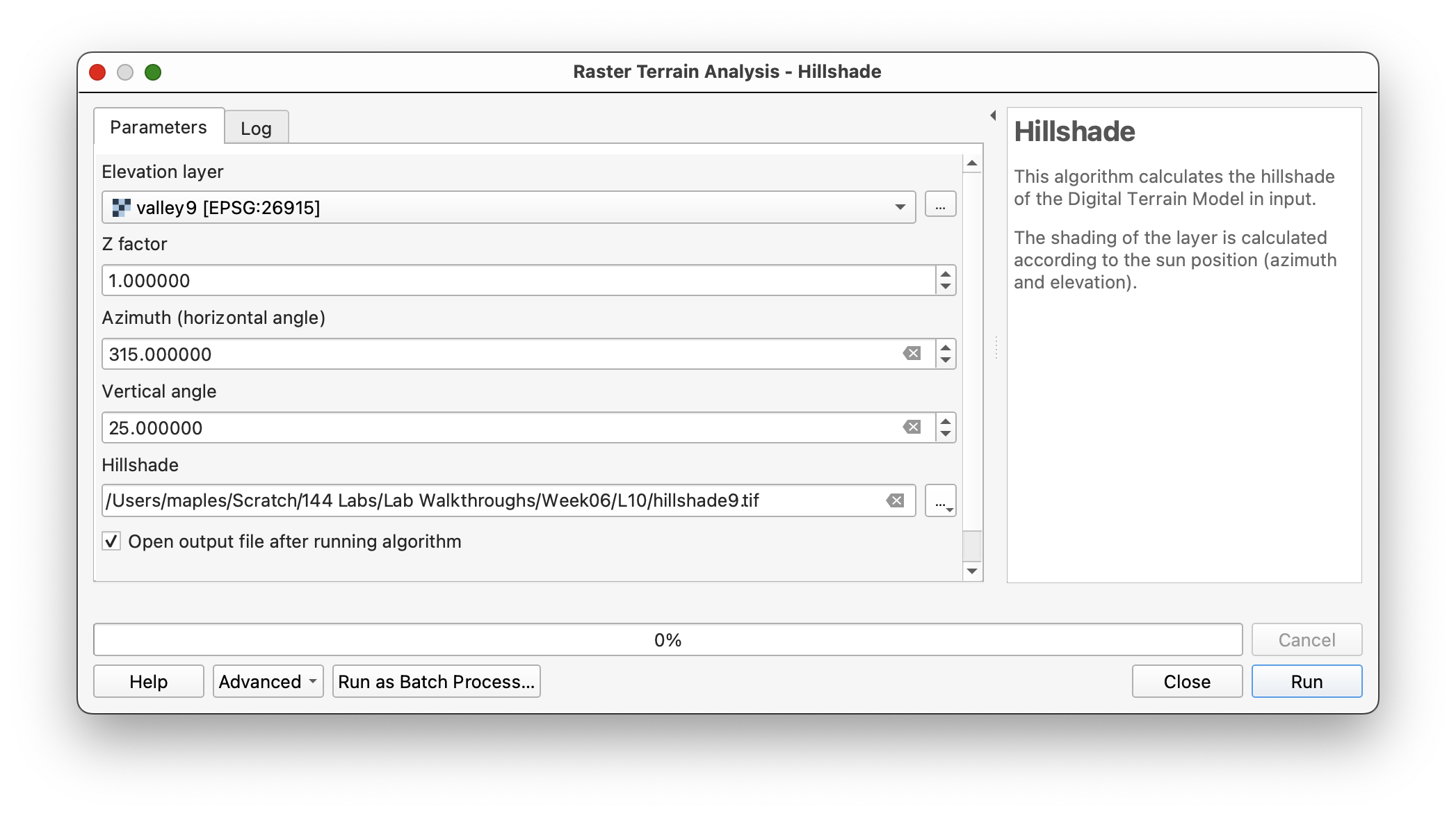 - Run the hillshade tool for