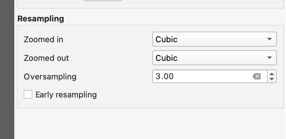 If checkerboard patterning is distracting, adjust the display resampling in layer properties or styling: