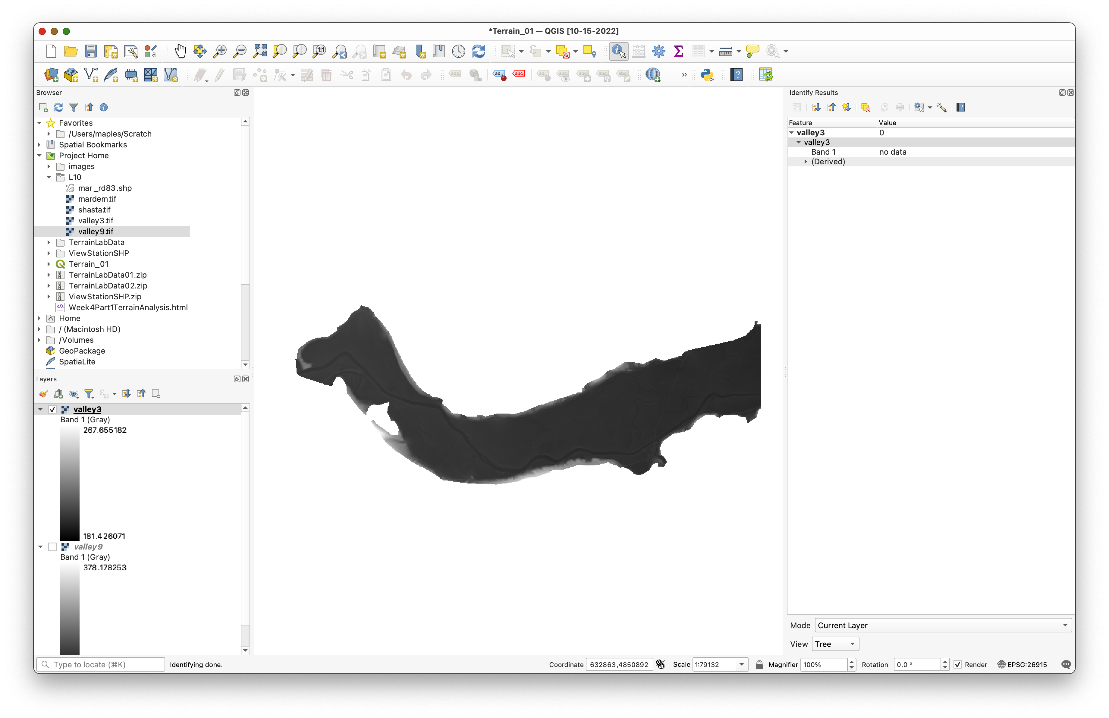 valley9temporarily and inspect the footprint ofvalley3. - Use Identify Features on the