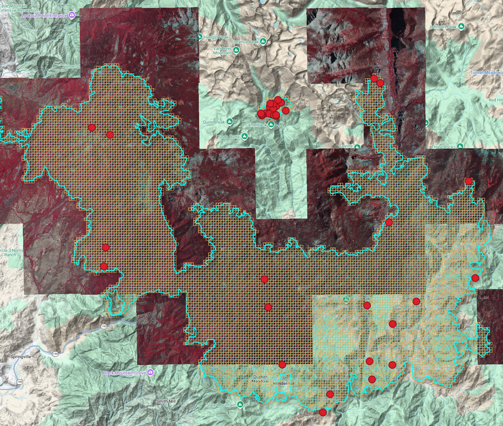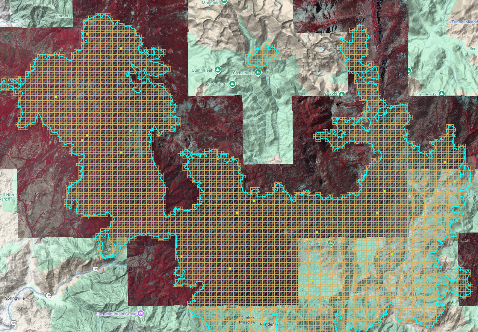 sunetid_castle_sample_grid, select a grid cell and zoom to it. - Inspect that cell in the postfire imagery.