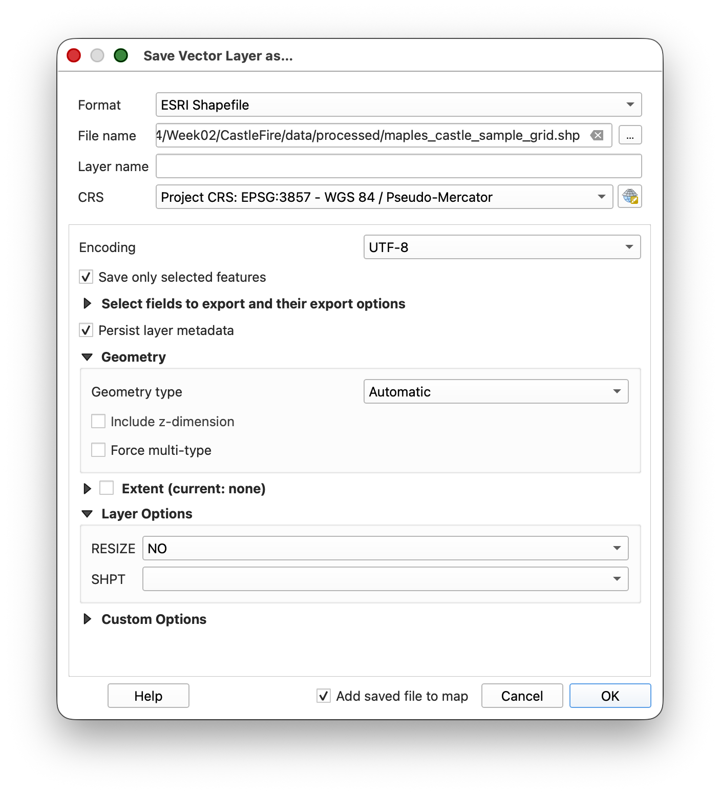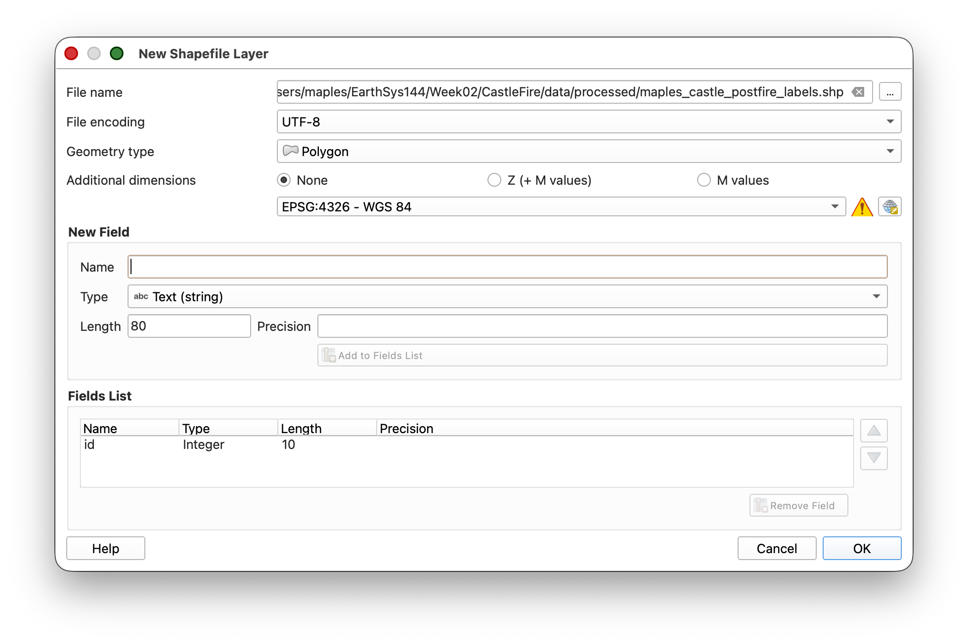 sunetid_castle_prefire_labels.shp- Add the new layer to the project if QGIS does not do this automatically.